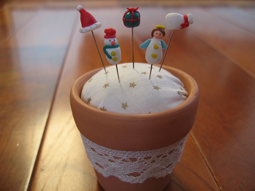 まち針と植木鉢はりやまのセットです。